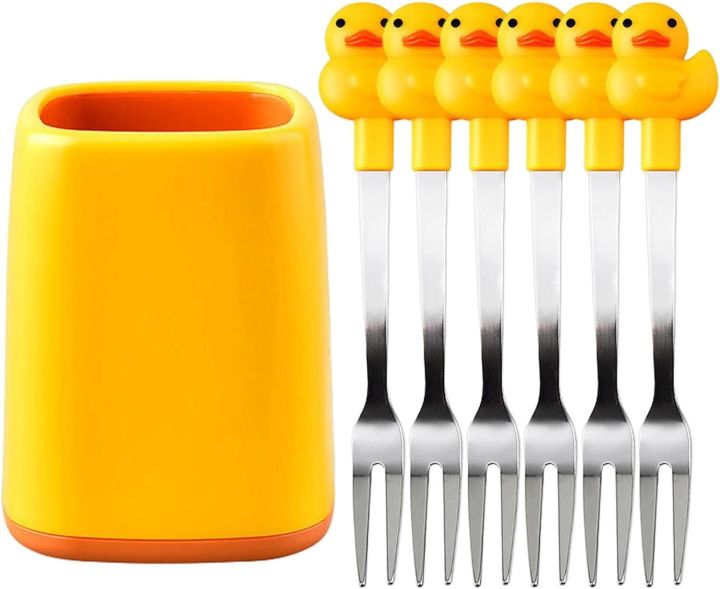 Fruit Fork 6 Stainless Steel Cake Forks Small Duck with Jar Choices for Cakes with Cute Animals for Afternoon Tea Dessert Tableware