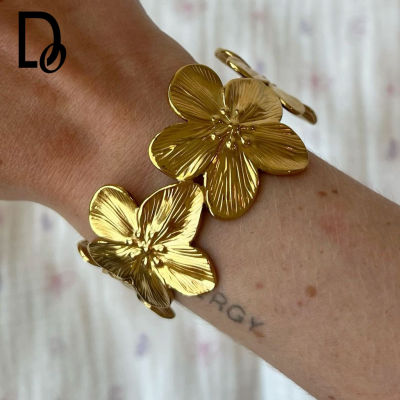 Retro Gold Splicing Flower Open Bangle Adjustable Bracelet for Women Fashion Jewelry Accessories New
