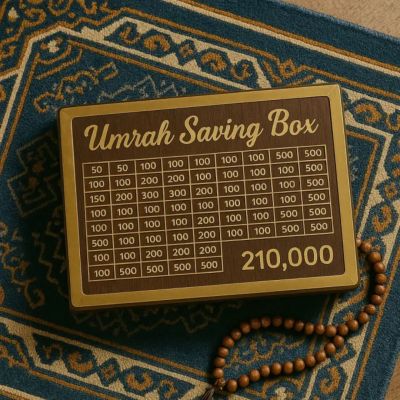 Umrah Saving Box - Wooden Islamic Money Saving Box - 280 Days