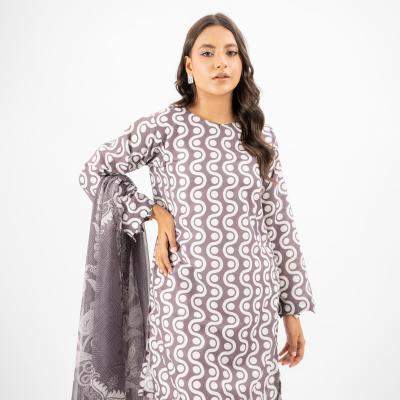 Maahru - Unstitched fabric for women - 2 Piece - Shirt & Dupatta - Mist Chevron(Blended Lawn)