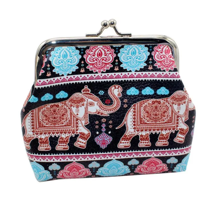 Women Elephant Print Kiss Lock Small Coin Purse Clutch Handbag