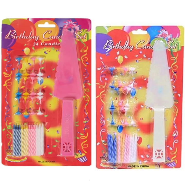 CAKE DECORATION CANDLE WITH PLASTIC KNIFE ( PACK OF 24 CANDLES WITH STAND )