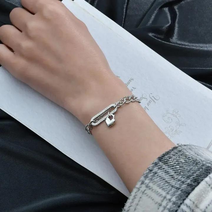 Premium Stainless Steel Jewellery – Corroded Peach Heart Chain Bracelet for Women & Couples Gift