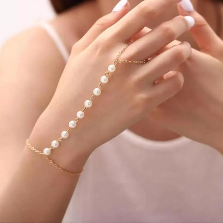 Gold%20Beautiful%20Excellent%20Quality%20Faux%20Pearl%20Bracelet%20Link%20Finger%20Ring%20Hand%20Chain%20Harness%20Jewelry%20For%20Girls%20/%20Women%20-%20Image%201