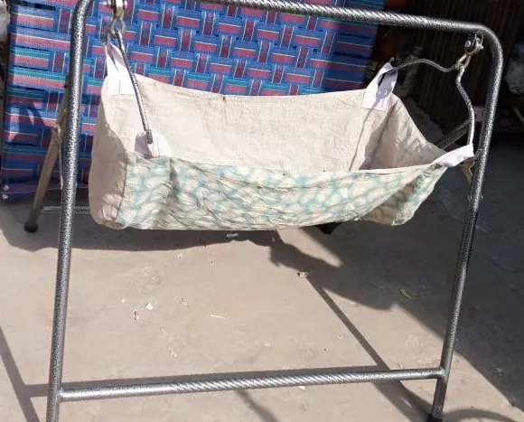 New Born Baby Folding Cradle in Steel Frame with Free Cloth - Silver