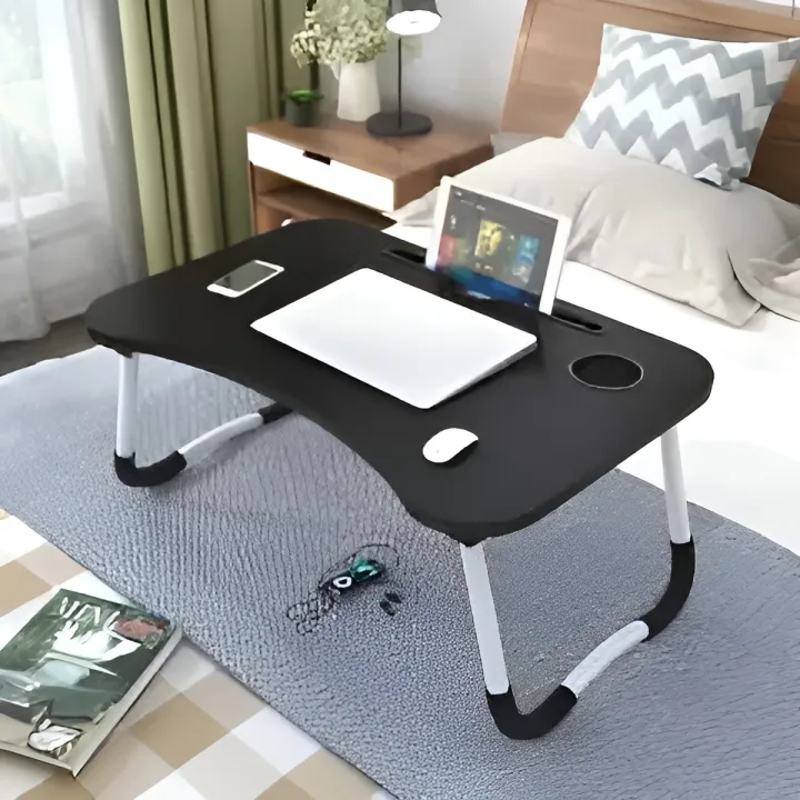Wooden Gaming Laptop Table For Bed Foldable Stand Ergonomic Portable Drawing Notebook Reading Food Breakfast Serving With Inbuild Tablet And Cup Holder Slots Couch Black Brown Pink Yellow Green White Blue Azam Sons