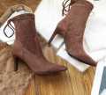 Elegant Women's Lady Pointy toe Cross Strap Ankle Boot casual Stiletto Heel Shoes