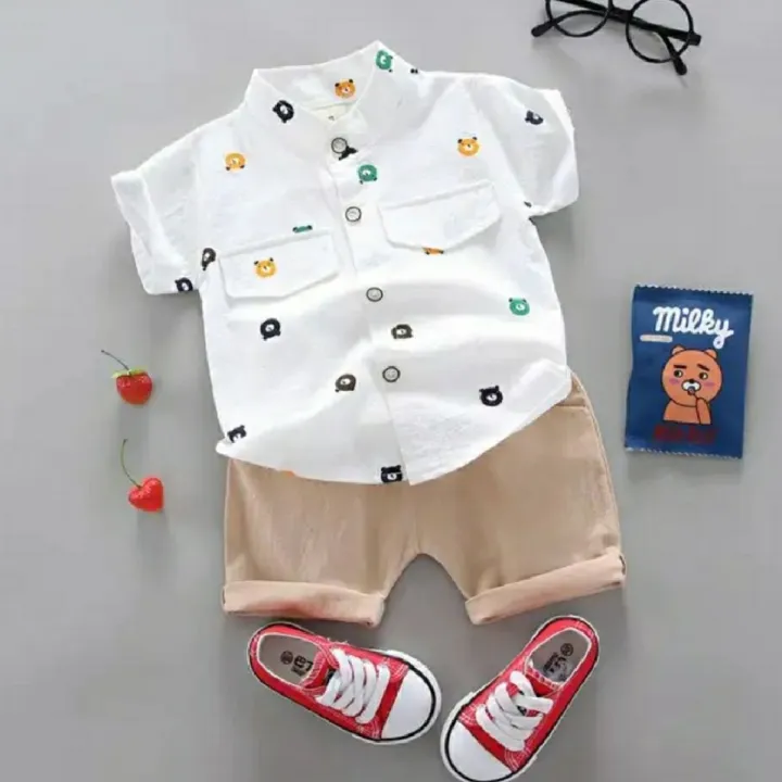 New Design Summer Collection Cotton And Casual Shirt And Short Pant For Kids Baby Boys And Baby Girls Round Neck Short Sleeves Tee Tops Clothes Set's Dresses Outfit Suit For Unisexual T-shirt And Niker Kids Clothes Sets Jannat Store