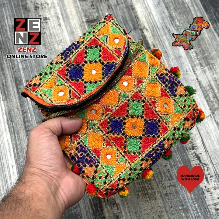 Multicolour Purse Hand Bag crafted with Embroidery & Sequins by ZENZ Sindhi Traditional Wear Embroidered Pouch
