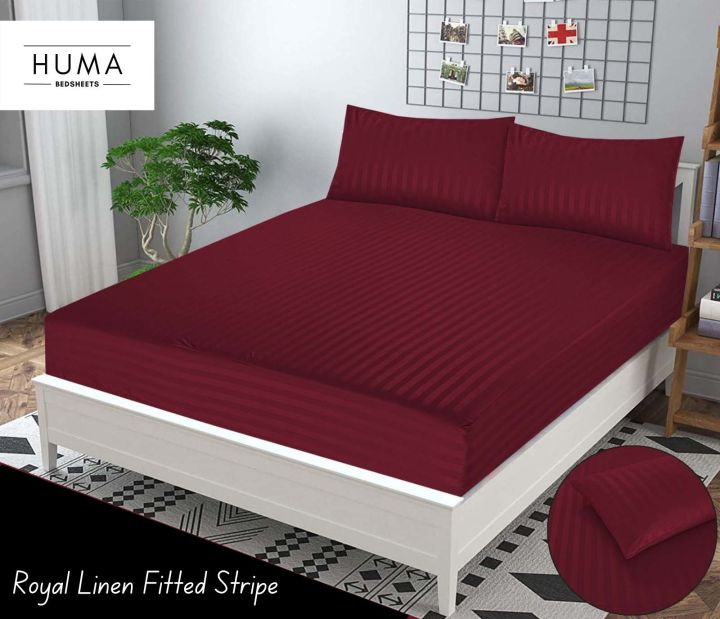 Huma - Royal Linen Fitted Micro Cotton King size bedsheets with 2 Pillows