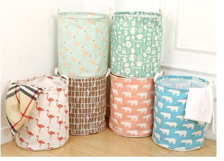 Folding Cotton Laundry Dirty Clothes Toy Storage Basket Waterproof - Multi Design