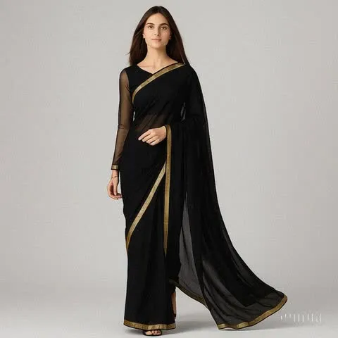 Women’s Stitched Chiffon Saree with Blouse and Petticoat - Ready to Wear| Women Stylish Chiffon Saree Stitched | Saree For Girls with Full Blouse