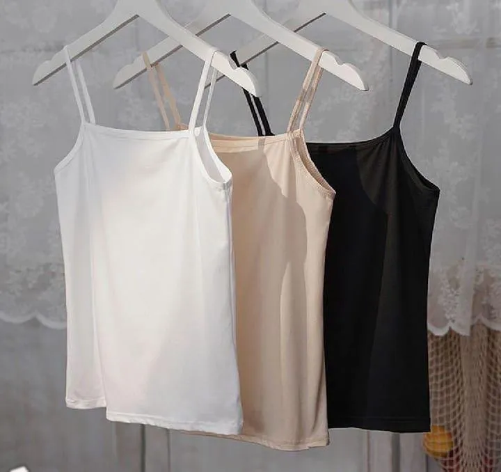 Pack Of 3 Women Simple Camisoles Biddies Stretchable Pure Cotton Tank Tops for Women Girls| Bra Vest for Girls Strap Cotton Sleeves Thin Camisole Vest Solid Top