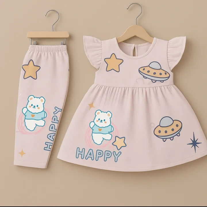 Baby Girl Dresses Cotton Frock And Pajama Trouser For Baby Girls Summer Collection Round Neck Tee Top's Clothes Set Dresses Outfit Suit For Baby Girls Jannat Store