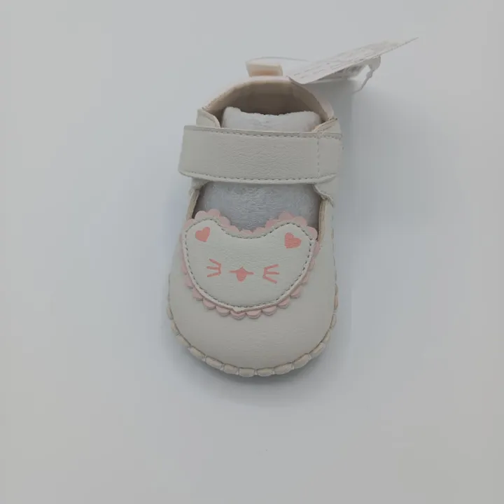 Newborn/Infant%20Soft%20Sole%20Shoes%20%7C%20Baby%20Girl%20Pre-Walker%20Flats%20with%20Cute%20Cat%20Face%20Embroidery%20&%20Velcro%20Strap%20(Cream/White)%20-%20Image%203