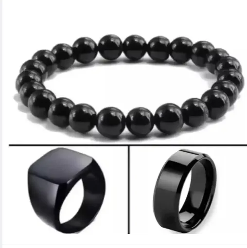 Black Combo Deal 3 In 1 Big Bracelet 1 Ring & 1 Black Chala For Men & Boys