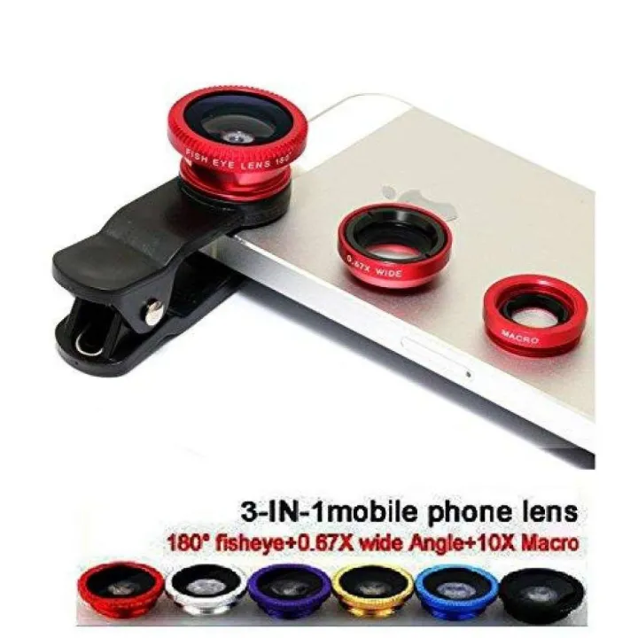 Mobile Phone Camera Lens - 3 In 1 Mobile Camera Lens Kit With Fish-Eye, Macro And Wide Angle Lenses & Cleaning Cloth Bag - Black