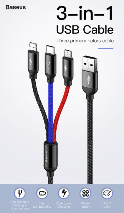Original Fast Charging Cable 3in 1 - Micro USB Android - Iphone - Type C - Braided LED Fast charging 100% Guaranteed