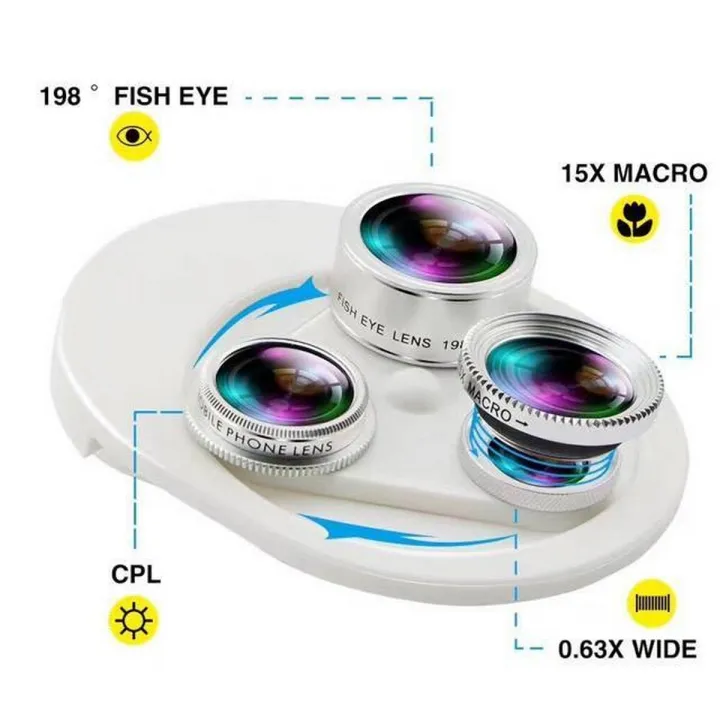 Integrated Universal Mobile Phone Lens 4 in 1 Wide Angle Fish Eye Macro CPL Lens