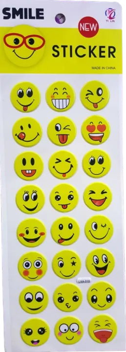 1 Card - 24 Smiley Emoji Sticker - Self Adhesive Fomic Smile Emoji Stickers