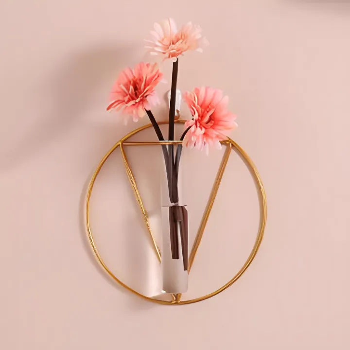 1pc Wall-mounted Glass Vase Home Decor Wall Decoration Iron Hanging Flower Vases Hydroponic Plants Container