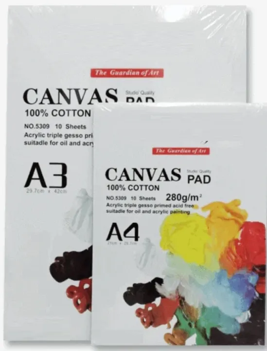 1 Pack - Canvas Pad 10 Sheets A4 / A3 Size 100% Cotton 280gm Studio Quality Canvas Pad