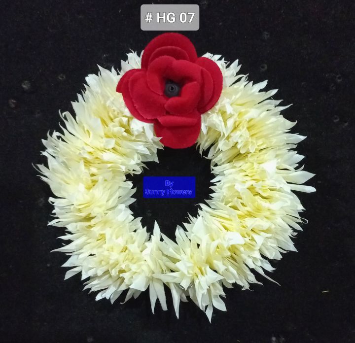 1 pair Artificial Hand Gajra offwhite with velvet Flowers #-14g1BB