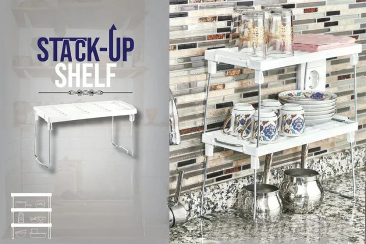 1 Pc Kitchen Stack up shelf for kitchen cabinets ,Stack up Shelf, Kitchen Organizer , Space-Saving Shelf, Pantry Organizer