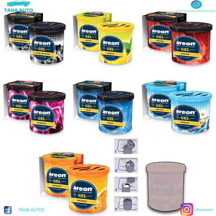 Areon Gel Perfume for Cars and Homes - Lemon/Black Crystal/Passion/Wish/Desire/Vanilla/Bubble Gum /Anti-Tobacco - New Auto Air Freshener