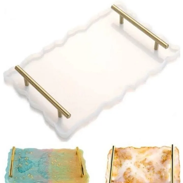 1 piece Silicone epoxy Resin Tray Mold Casting with 2Pcs aurum Handles