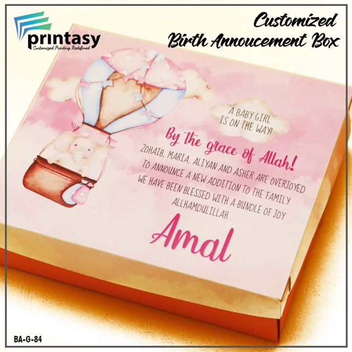 Customized Birth Announcement Boxes BA-G-84 1000 Gram| Pack of 10