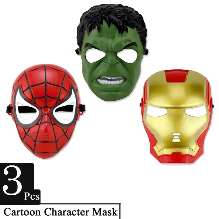 3 Pcs Set - Paper Plastic Cartoon Character Mask Toys For Kids Boys Girls Fun Party Playing Prank Face Mask Toy