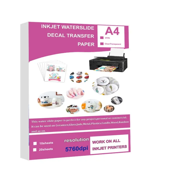 10 Sheets DIY A4 Inkjet Waterslide Decal Transfer Paper White Clear Laser Waterslide Decal Paper for Inkjet Laser Printer