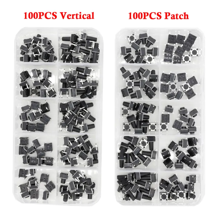 100 PCS 10 Models 6*6 Tact Switch Tactile Push Button Switch Kit Height: 4.1 5~12MM DIP 4P Micro Switch 6x6 Key Switch