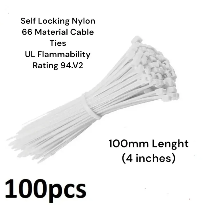 100pcs Cable 100mm (4 inches) Reusable Standard Self-locking Plastic Nylon Wire Zip String Tie White