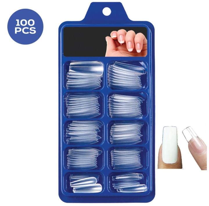 100Pcs / Coffin Shape Natural & Transparent Color Artificial Nails Kit Fakee Nails Acrylic Nails For Girls Beautiful Nails Falsee Nails