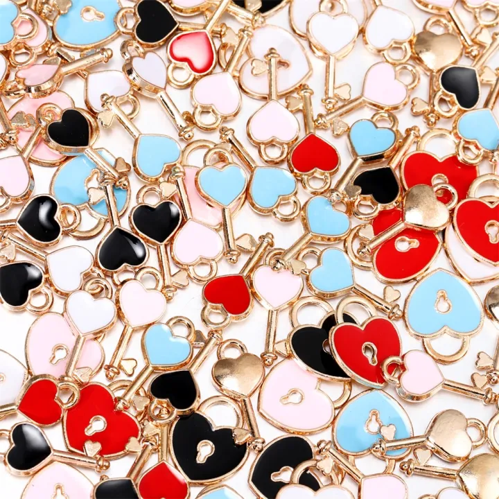 10pcs/bag Alloy Drop Oil Pendant Heart Love Lock Keychain Hanging Charms For DIY Earrings Necklaces Jewelry Making Accessories