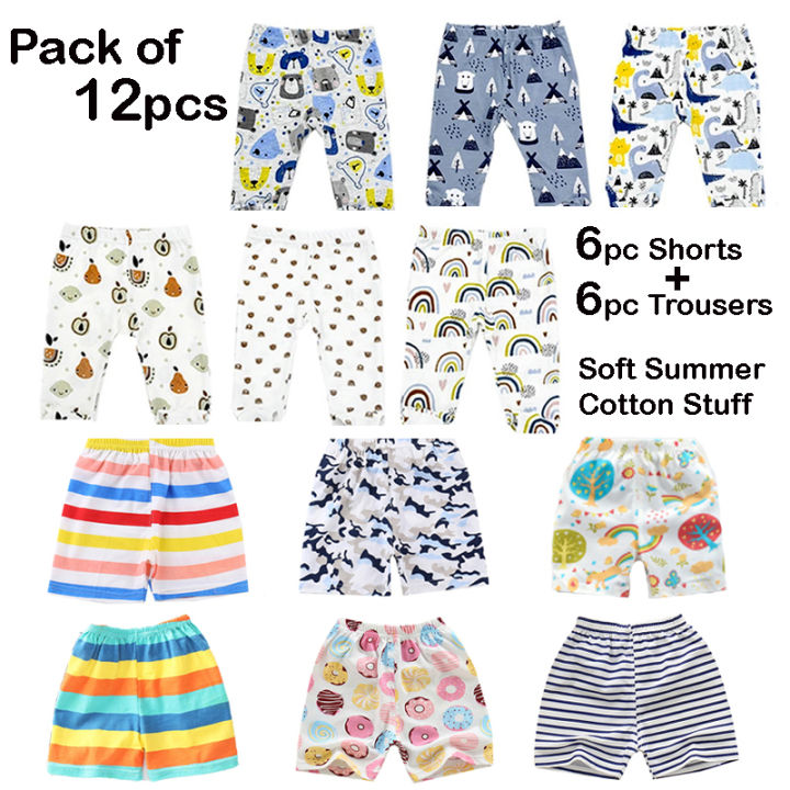 12 pcs - Regular use Summer cotton pants shorts 0-18 month old baby girl - Baby nicker - Bottoms shorts - printed nikers for babies (6 Nickers + 6 Trousers)