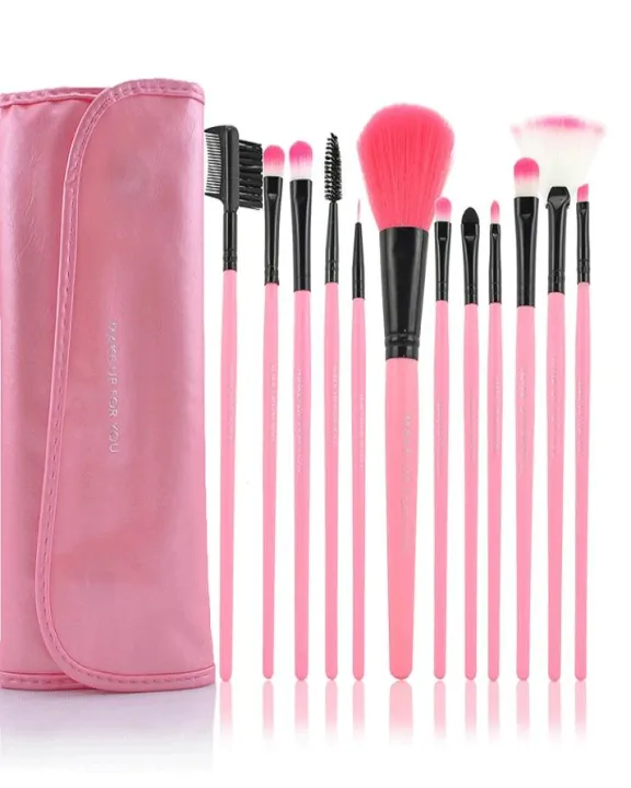 12 Pieces Makeup Brushes Set With Beautiful Pink Pouch