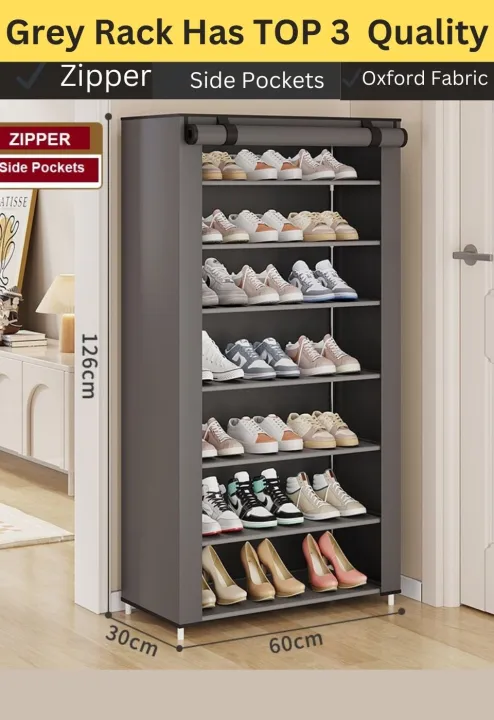 12mm Strong Metal Pipe Structure Single & Double Row Shoe Rack organizer portable for 15 to 40 pairs with fabric cover