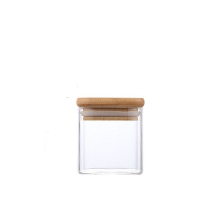 150ml 3 pieces mini Clear Square Glass Premium Borosilicate Jars Bamboo Silicone Sealed Lid
