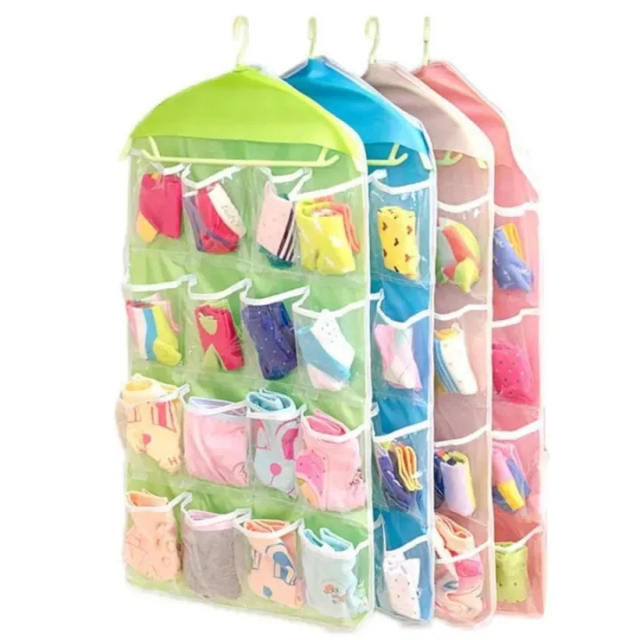 16 Pocket Kid Toy Storage Over Door Hanging Shoe Rack Hanger Bathroom Organizer Pouch Bags - Multicolour