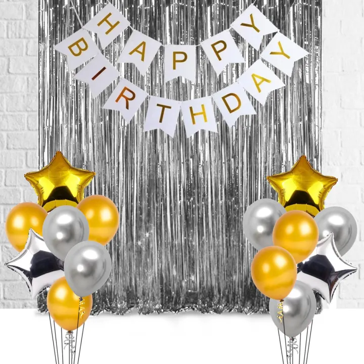 17Pcs Happy Birthday Foil Curtain, Banner and Balloons Decoration Items Combo for Birthday Party Supplies