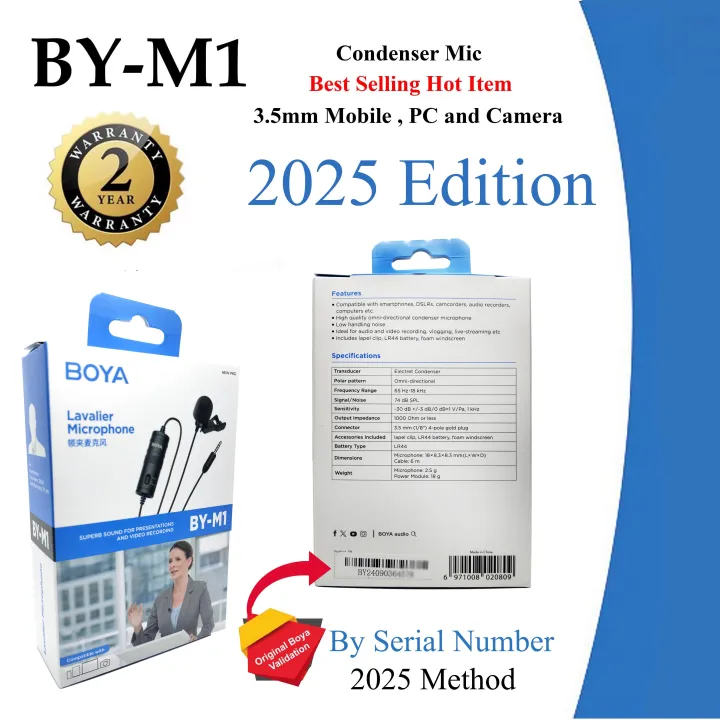 2 Years Warranty - Boya M1 Lavalier Collar Microphone for DSLR & Android Phone BY-M1 Mic