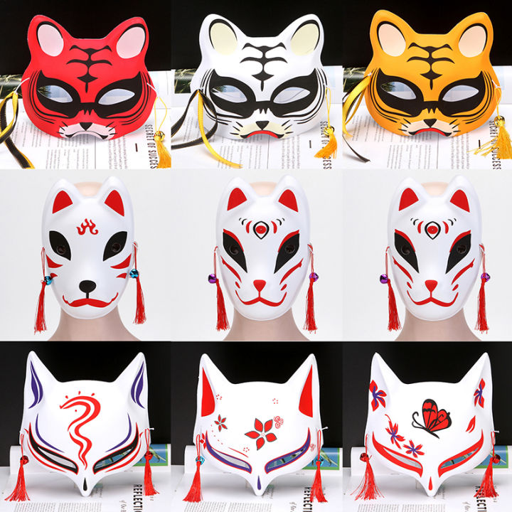 1Pc Anime Half Face Hand-painted Cat Fox Tiger Mask Anime Demon Slayer Masquerade Halloween Festival Party Cosplay Prop Creek