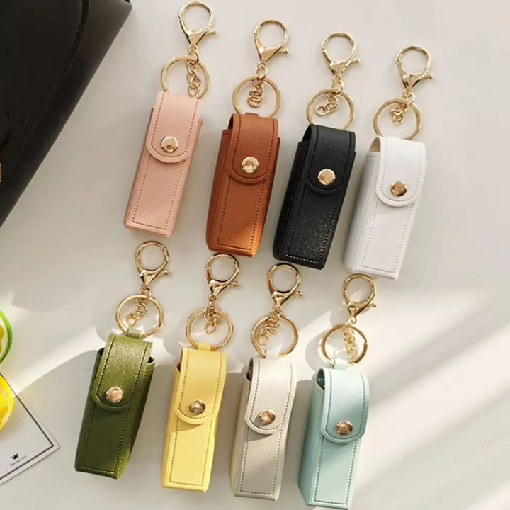 1PCS New Leather Lip Balm Bag Keychain Holder Protective Cover Mini Portable Key Bag Lipstick Cosmetics Storage Bag