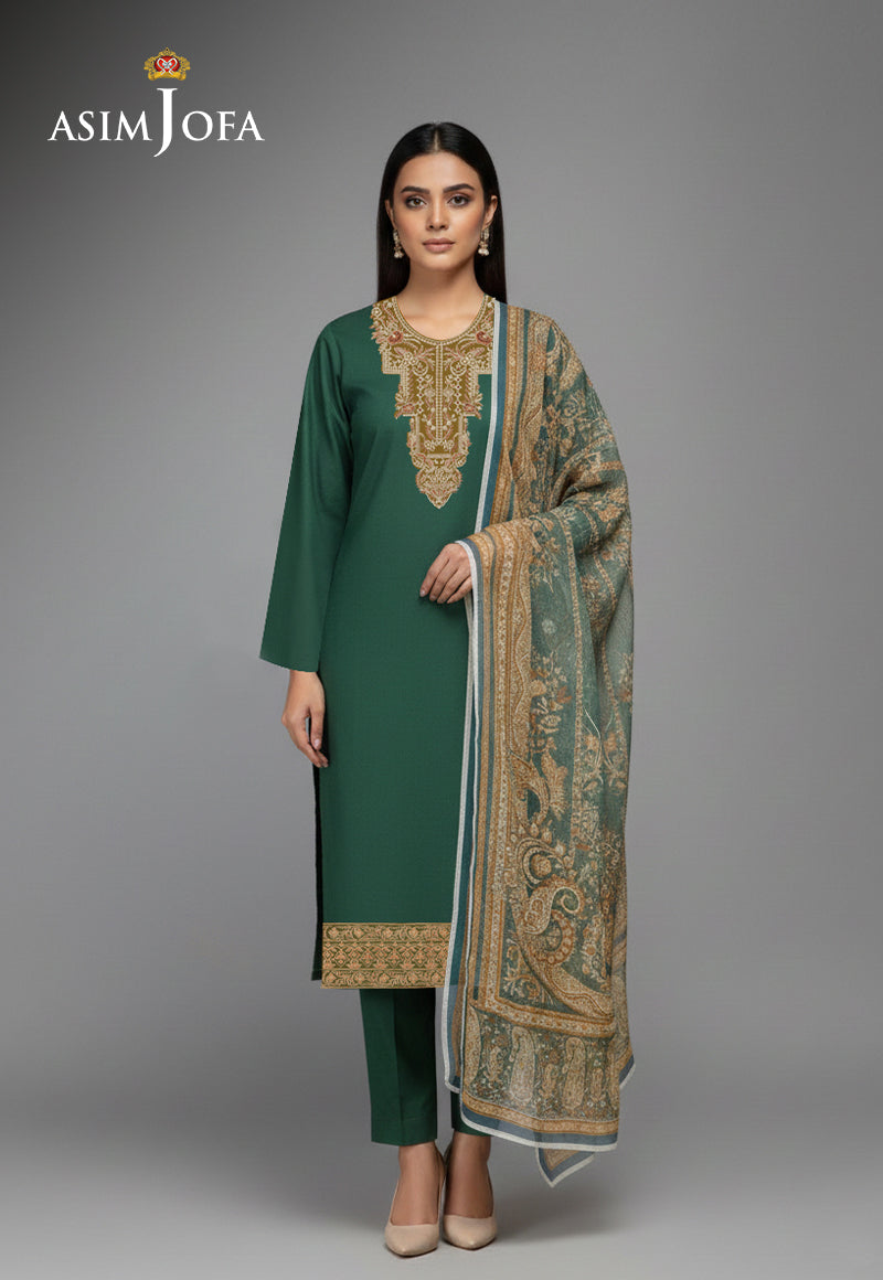 Asim Jofa Unstitched 2 Piece Khaddar Shirt Chiffon Dupatta Suit For Women - AJSO-341 Unstitched 2 Pcs Shirt Dupatta - Unstitched Fabric For Women - Rang-e-Bahar