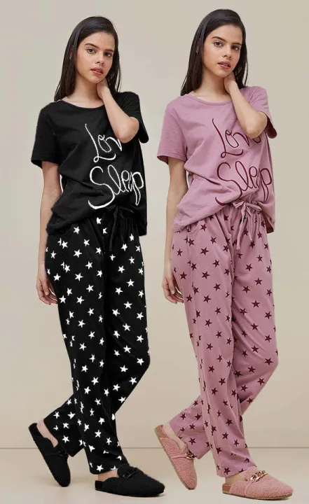 Pack of 2 Love Sleep Soft cotton Night Wear for Women Night suit for girls and women, Sleeping Dress Girls Sleepwear Loungewear Sleeping Suit lingerie T shirt and Pajama, Night Dress for girls and women