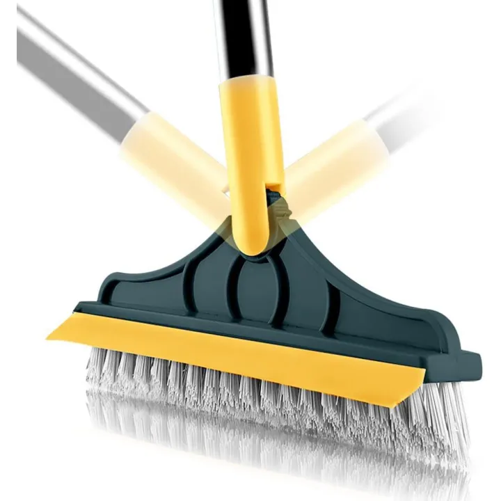 2 in 1 Cleaning Scrub Brush, Adjustable V-Shaped Floor Scrub Brush Premium 120° Rotating Removable Brush with Long Handle and Squeegee for Kitchen Bathroom Home Office School