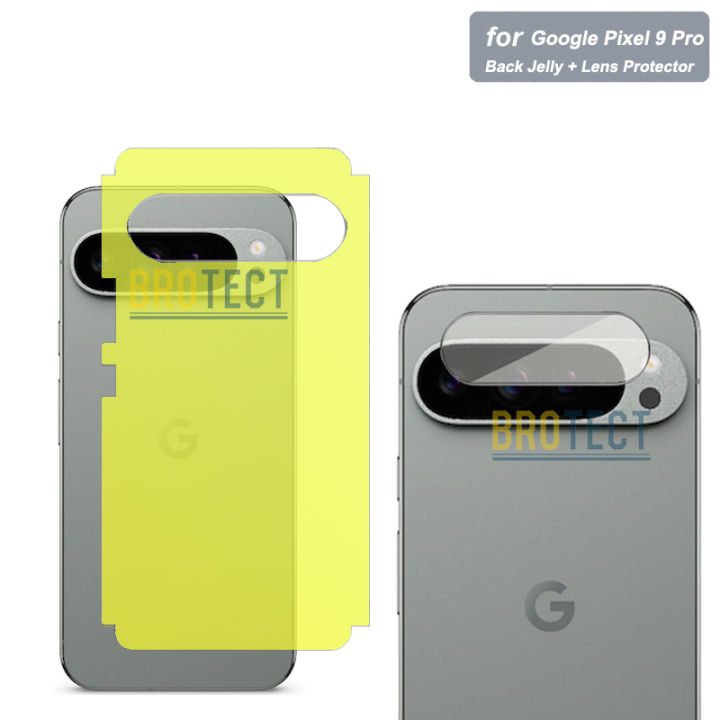 2 in 1 Google Pixel 9 Pro Back Jelly Protector + Camera Lens Protector 9H Soft nano Unbreakable film & Vinyl soft skin sheet wrap lamination paper Edge to Edge Protector For Pixel 9 Pro - Transparent